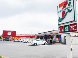 お向かいにはセブンイレブンとドラッグストアがあります。