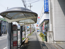 ショールーム前にはバス停があります。